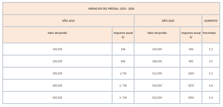 En el año 2020, el impuesto predial de Lima Metropolitana tendrá un aumento promedio de 5%, con relación al impuesto pagado en el año 2019, estimó la Gerencia Legal de la Cámara de Comercio de Lima (CCL).