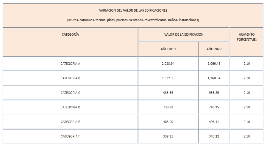 Cabe mencionar que los valores de las edificaciones de los predios tendrán un aumento de 2.1% en promedio, mientras que los valores arancelarios de terrenos para el próximo año se han incrementado en 4% en promedio para predios en cuyas áreas colindantes no se han realizado obras públicas y de 12% donde se han realizado tales obras y se hizo la inspección ocular correspondiente, según informó la Dirección de Urbanismo y Desarrollo del Ministerio de Vivienda.